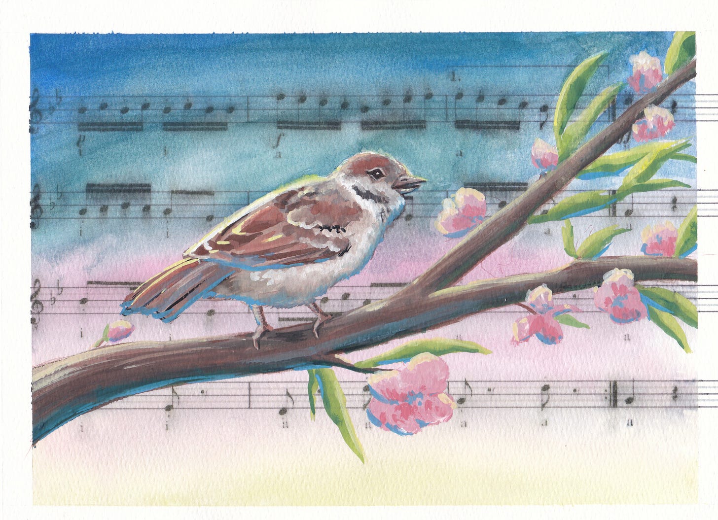 Her poem, the particular one with “bow,” struck me because it was so emotionally at odds with all the adjectives usually, fairly or unfairly, assembled to describe Plath’s work. “April Aubade” is celebratory. All her powers of agility are on display. The end of the sonnet reclaims her Plathiness (TM) with a dour note, though those last lines could also be read as playful. In either case, she describes a cherishable respite. Of all her haunting imagery for which she’s rightly praised, I think “A saintly sparrow jargons madrigals / to waken dreamers in the milky dawn,” may be my favorite. “Madrigals” is a pleasant word.