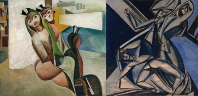 Lewis was exuberantly abstract when he wanted to be. Pound called Lewis’s jazzed up Cubism offshoot Vorticism. It made a splash and had imitators and doubtless has descendants someone better versed in art than I can tell you about. To me it’s love it or leave it. I’m awed by Beach Babies and Les danseurs. I like his work with figures in action. Some of the purer abstractions that look like cityscapes or energy drink labels leave me scratching my head. Some are okay.