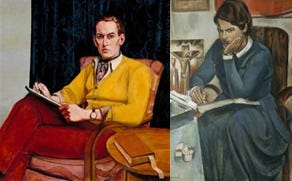 He did what I’d call semi-realistic portraits and someone with an art background would call something completely different, best described by me as paintings that strive to accurately reproduce an image without attempting realism. It’s not impressionistic but it’s not precise. They’re a convention by which the artist says this isn’t what this person looks like so much as what this person looks like when painted in oil. That’s the sense I get looking at his portraits of Nigel Tangye and Naomi Mitchison. The artist’s intent is realized without the precision expected in a Caravaggio, for instance.