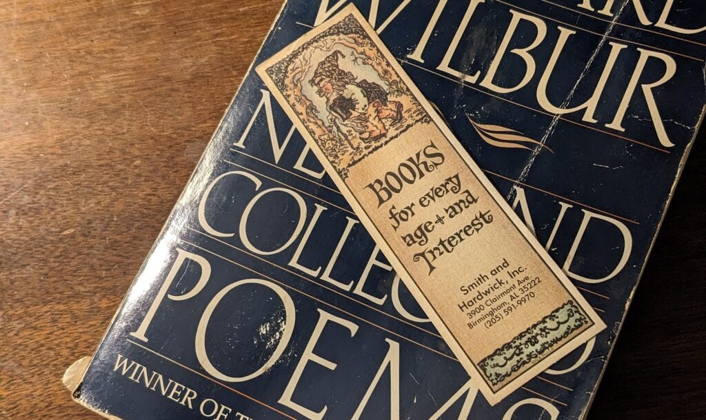I’ve been reading Wilbur since high school. I worked the two weeks before Christmas a few times at a neighborhood bookstore. On Christmas Eve, the owner let us short-timers each pick out a hundred dollars-worth of books as a bonus. That’s how I got my copy of his collected works. It still has the now shuttered store’s bookmark in it. Wilbur’s voice as I’ve imagined it is very even. I’d be shocked to hear it yell.