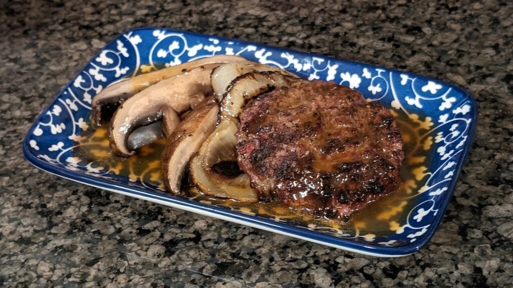 This is not the comfort food steam table stuff. This Salisbury steak is cleaner and satisfies a different hankering.