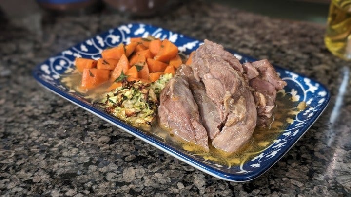 It all came together well. Better than we expected. The gravy is gold. I don’t know that I’ve ever been as happy with a meat sauce not meant for pasta. The process requires that liquid covers the meat for braising so there’s way more sauce than needed for the amount of lamb cooked.