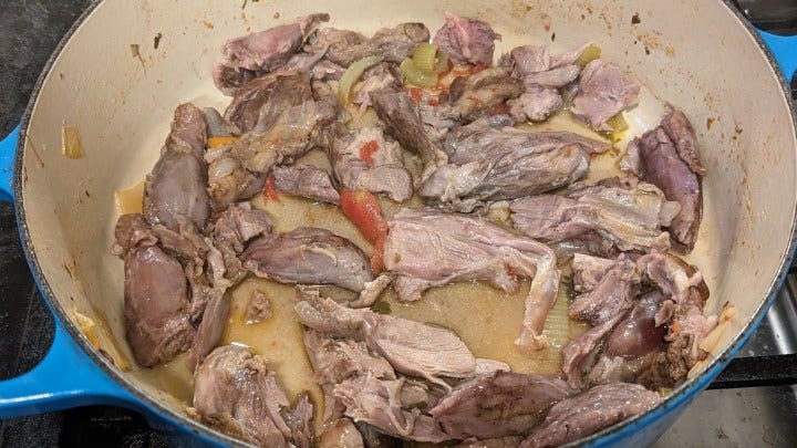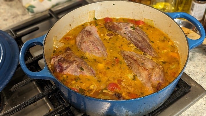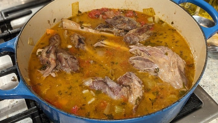 After that, the meat should be done cooking. Remove the shanks and let them cool.