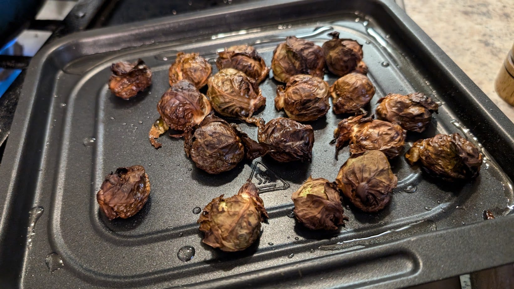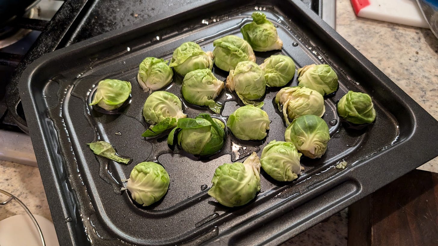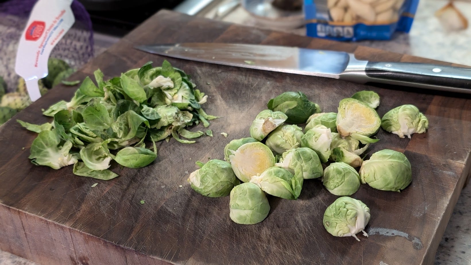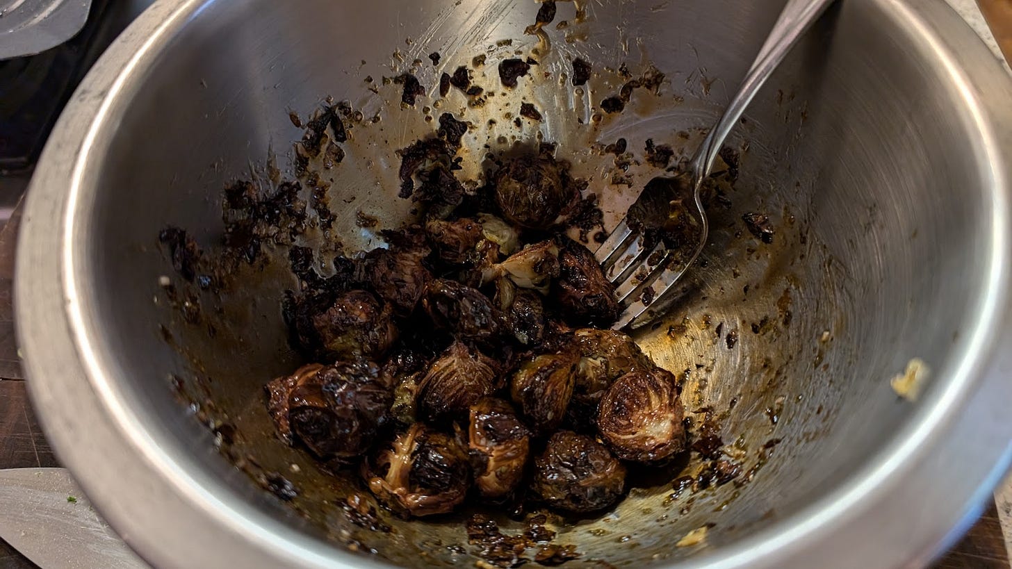 In it, there’s a recipe for “Crispy Brussels Sprouts” and it’s delicious done exactly as he tells you. That said, it doesn’t require measurements if you’ve eaten before. His contribution is in choosing a fantastic assembly of ingredients. Throwing it together is a matter of preference and whim. My wife calls such things “vibes and eyeball” dishes. Our interpretation is loose.